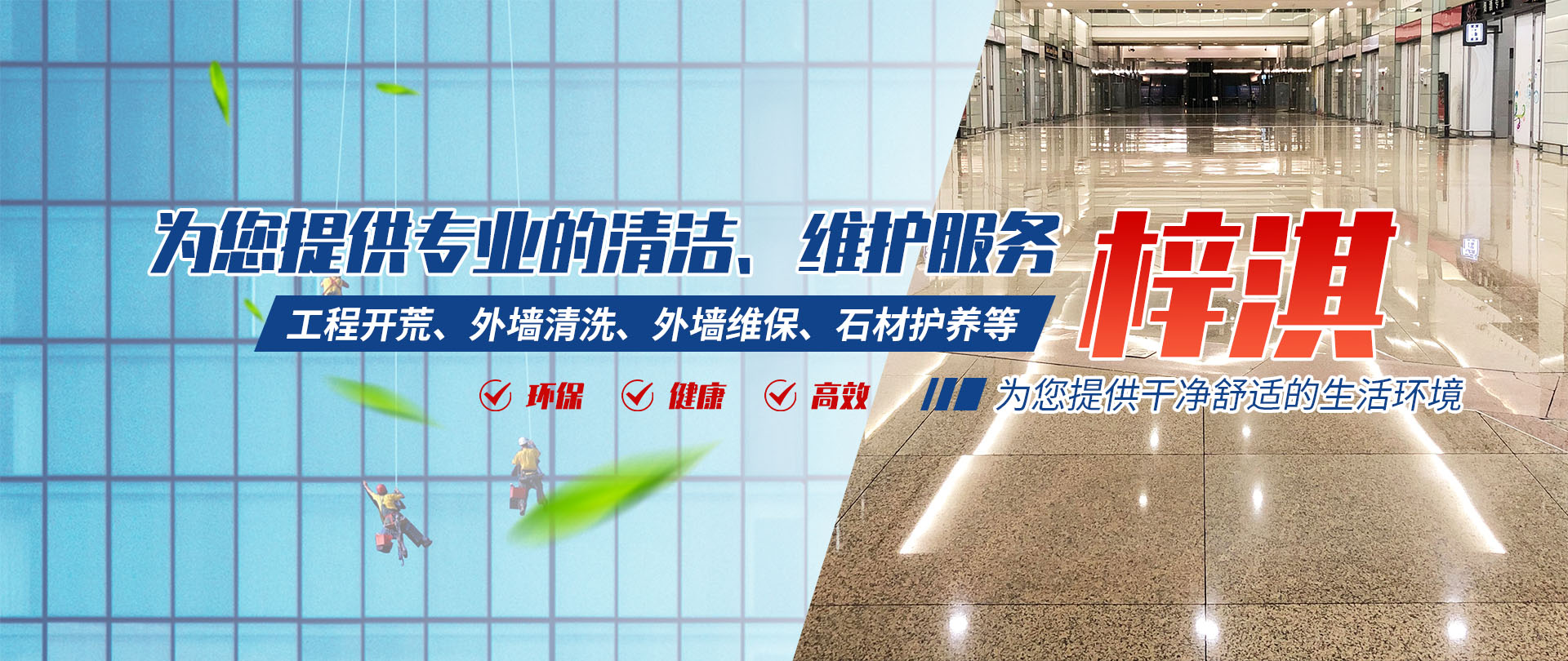四川梓淇清潔服務有限公司,是一家從事物業管理,外墻清洗,外墻維保,綜合類開荒保潔企業公司。   專業從事物業管理、工程開荒類、外墻清洗、外墻維保、石材護養服務。公司有正規培訓、擁有專業的保潔隊伍;齊全的清潔設備;規范的作業流程;主動的服務意識。   秉承“環保、健康、科技、創新、專業”的服務理念,為您提供詳細的施工方案,合理的報價,高效的服務,全力為客戶創建一個綠色環保、清新的環境,我們的服務宗旨是:只要您一個電話,我們將為您營造一個干凈舒適的生活環境。